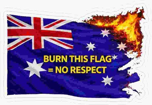 Australian Patriot Sticker Burn This Flag = No Respect 150mm x 105mm contour cut
