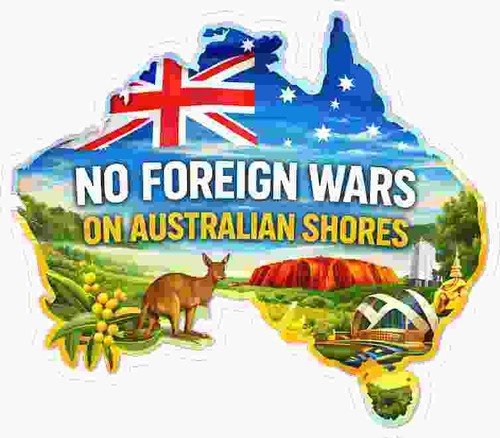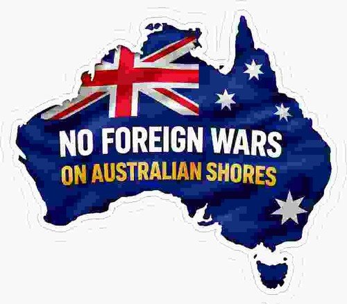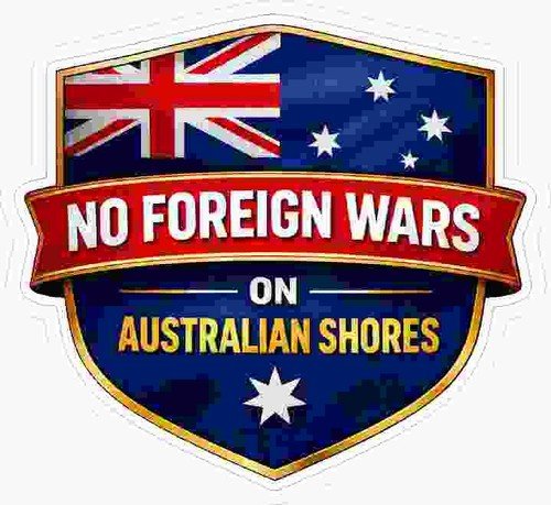 Australian NO FOREIGN WARS ON AUSTRALIAN SHORES contour cut 105 x 122 mm approx