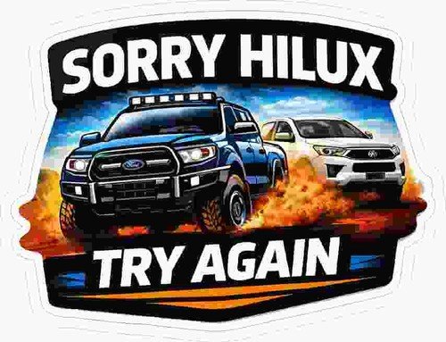Ford Ranger Vs Hilux 130mm x 105mm Sorry Hilux Try Again white border