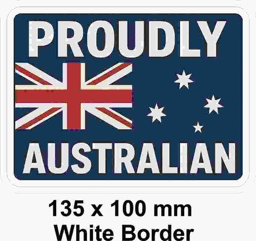 Australian proudly Australian Decal / Sticker 135 mm X 100 mm White Boarder