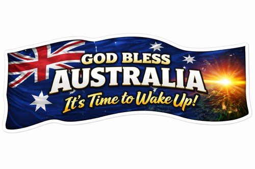 Australia Sticker Bumper Style ” God Bless Australia Time To Wake Up”